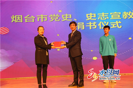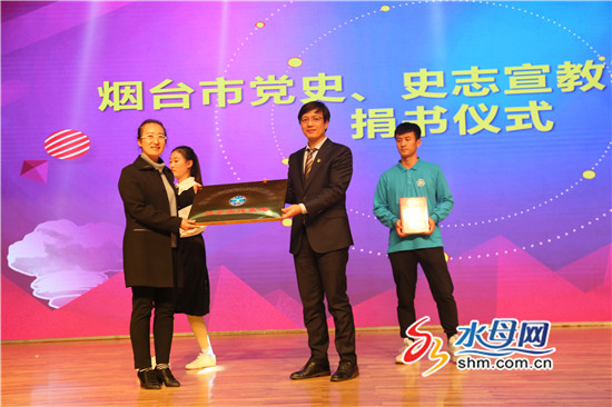 晚会上,烟台市委党史研究院副院长李迎春与烟大核学院教工党支部书记、核装备系主任赵相金共同为烟台市党史史志宣教基地揭牌,并向烟台核学院赠送了《烟台改革开放实录》、《烟台市志(1978—2002)》以及红色系列丛书等共计200余册。