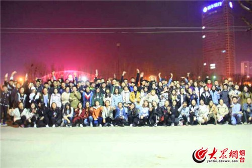 【大众网烟台频道】地球一小时烟大学子创意熄灯倡导环保