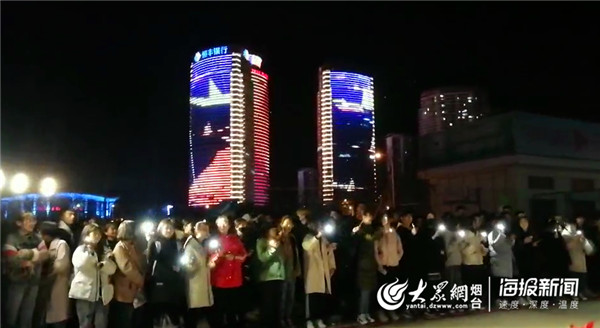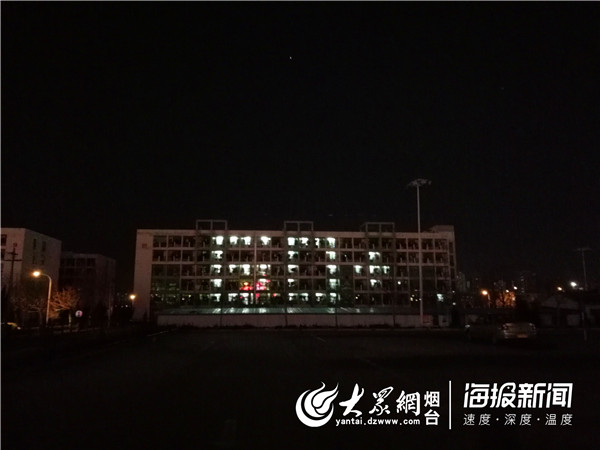 烟大宿舍楼用灯光拼出“EARTH(地球)”字样