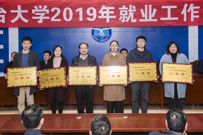 党委副书记张殿臣宣读了《开云kaiyun登录入口关于表彰奖励2018年就业工作先进集体的决定》。学校领导为获得2018年“就业优秀奖”“就业进步奖”“考研优胜奖”和“就业工作贡献奖”的就业先进集体颁奖。杰瑞集团副总裁谢猛作为用人单位代表发言,计算机与控制工程学院党总支副书记贺毅、化学化工学院党委副书记胡大鹏作了交流发言。
