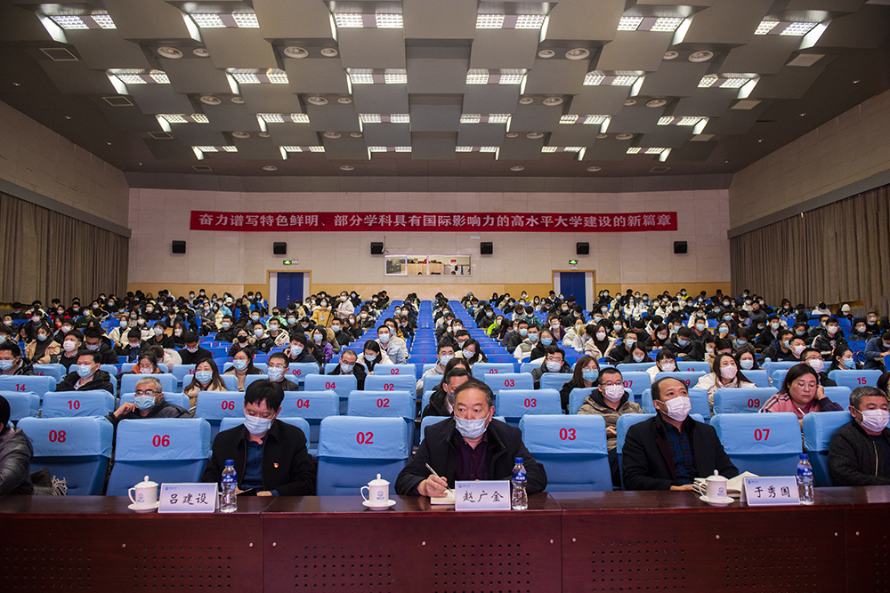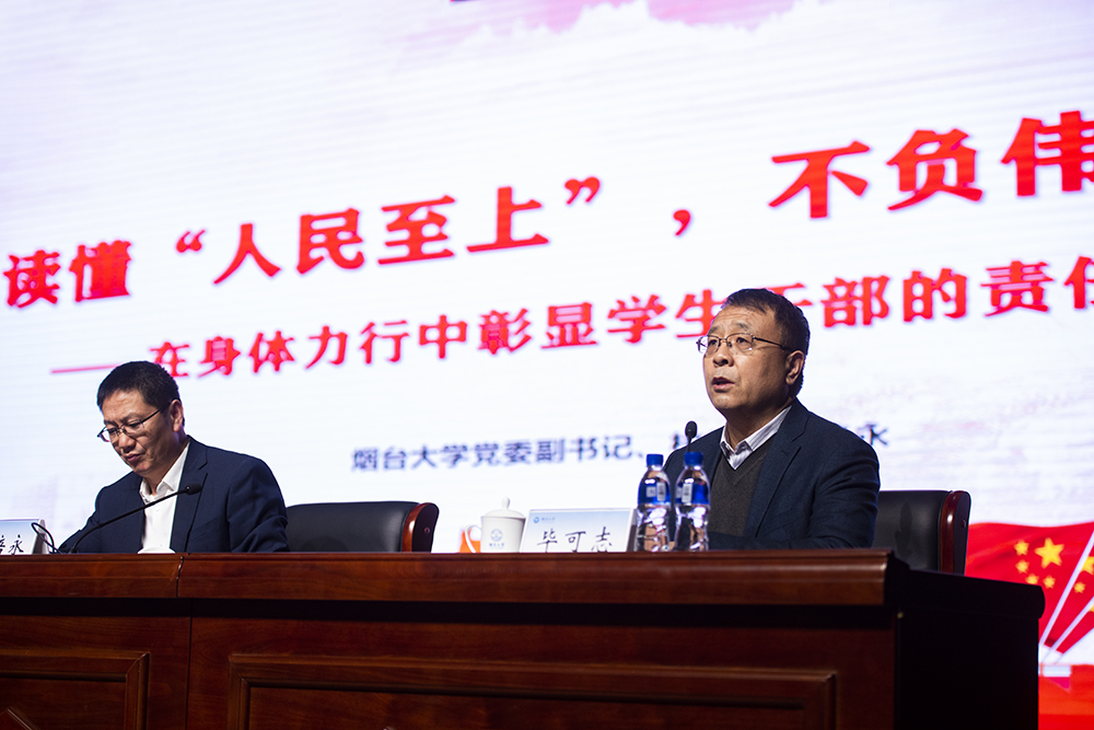 “在学校工作中,‘以学生为中心’是我们一切工作的出发点和落脚点,具体到培养学生层面,就是要坚持立德树人根本任务,把学生的成长、成才和成人作为奋斗目标;就是要顺应社会和时代的要求,不断改革创新,努力提高教育教学质量,培养更多更好的特色人才;就是要围绕学生、关照学生、服务学生,树立以学生为中心的发展理念。37年来,通过一代一代烟大人的接续奋斗,取得的成绩让我们备受鼓舞,也让烟大人感到骄傲与自豪……”段培永带领学生追忆校史,从学校成立到拓荒创业建校园,再到锐意改革开新局,梳理了学校37年来尤其是近年来学校事业发展成就,强调学校始终坚持社会主义办学方向,把立德树人作为根本任务,坚持以学生成才为中心的办学理念,努力将学生培养成为全面发展的社会主义事业建设者和接班人。