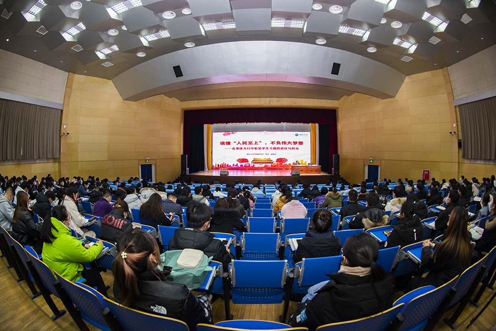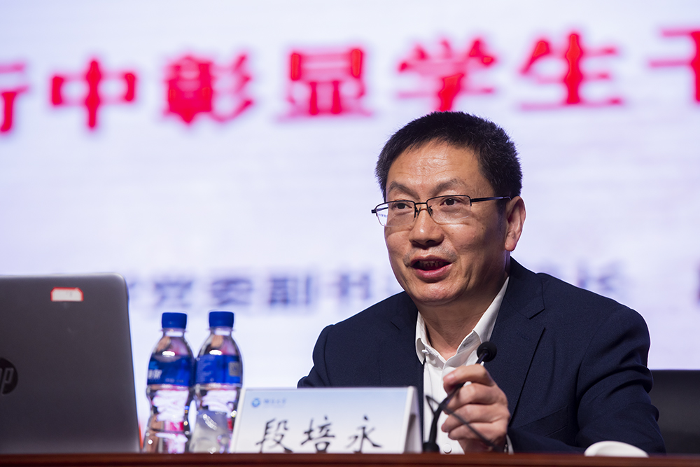 谈到学生干部如何以实际行动在担当奉献中践行“人民至上”的价值理念时,段培永强调,学生干部是身边人后退逃避时迎难而上勇挑重担的人;是身边人争荣夸耀时舍己为公乐于奉献的人;是身边人体验活动时默默付出任劳任怨的人;是身边人娱乐休闲时争分夺秒勤奋学习的人。他指出:“党和人民事业发展需要一代代中国共产党人接续奋斗,必须抓好后继有人这个根本大计。” 这一重要论断,从关系党和国家前途命运的高度,对培养造就大批党和人民事业的合格接班人提出了明确要求,也为青年学生指明了奋斗方向,定位了成长坐标。他希望同学们既要在政治上带头,也要在学业上带头,既要围绕学生做好“公转”,也要聚焦自己做好“自转”。他勉励同学们们找准角色定位,树立坚定的立场,做有思想的人;严格要求自己,练就过硬的本领,做有担当的人;保持工作激情,培养强大的内心,做有情怀的人。