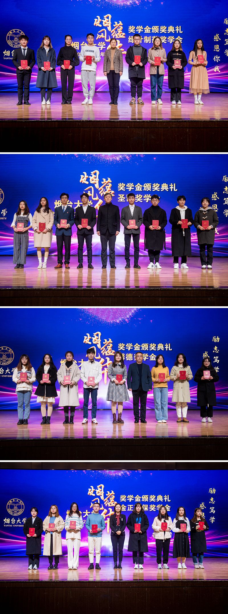 典礼以展示获奖学子风采的视频短片开场。在热烈的掌声中,校领导和嘉宾依次为各类奖学金获得者、先进班集体、社会实践优秀团队代表颁奖并合影。颁奖过程穿插了学生演讲、啦啦操、原创舞剧和音诗画等精彩节目,会场洋溢着青春朝气,现场氛围温馨感人。